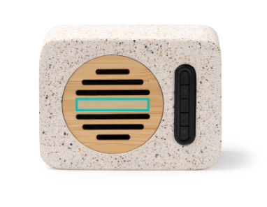 Altaveu sense fil de 5W amb cos fabricat en pedra de terrís reciclat i bambú.