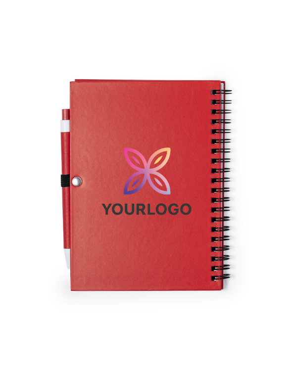 Personalitza la Llibreta Koguel i destaca la teva marca amb un elegant set de llibreta i bolígraf dissenyat per imprimir el logotip de la teva empresa. La llibreta té anelles i tapes de suau tacte de cartró reciclat, juntament amb 70 fulles llises i un suport per al bolígraf. Inclou un bolígraf a joc, tot disponible en una àmplia gamma de colors perquè puguis escollir el que més combini amb el teu color corporatiu. Perfecte per a regals d´empresa i promocions, aquest conjunt combina sostenibilitat i atractiu visual.