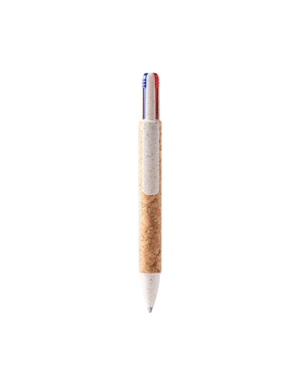Bolígraf personalitzable amb 4 tintes (blau, vermell, verd i negre), cos de suro i fibra de blat, mecanisme retràctil i opcions de marcatge. Ideal per a publicitat i regals dempresa.
