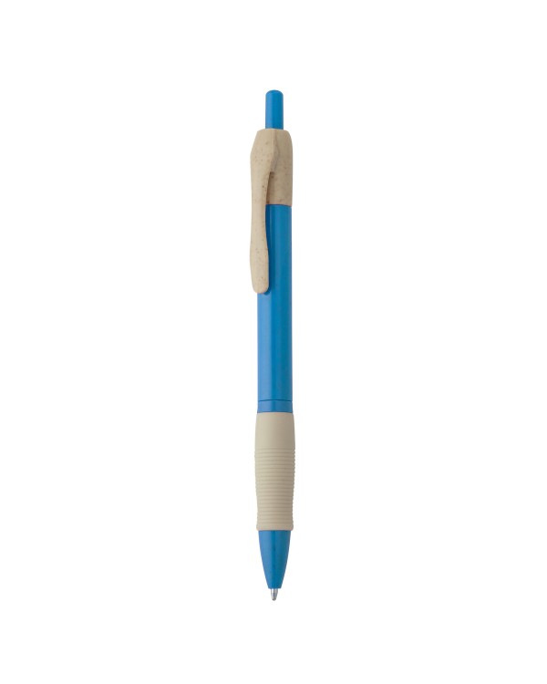 Bolígraf personalitzable de fibra de blat i ABS amb mecanisme polsador, tinta blava i disseny ergonòmic. Ideal per a promocions i regals d´empresa.