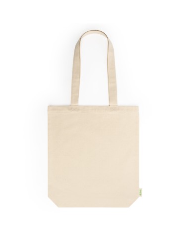 Bossa ecològica de 100% cotó orgànic amb nanses llargues i manxa ampli. (38 x 42 x 9 cm) Personalitzable amb logo, ideal per a publicitat, marxandatge i regals d'empresa.