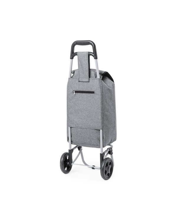 Carro de compra plegable en polièster 600D RPET reciclat , amb nansa reforçada , rodes resistents , butxaca del darrere i estructura metàl·lica . Personalitzable amb el teu logotip , ideal per a marxandatge.