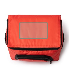 Nevera personalitzable de 210T RPET, amb interior isotèrmic, butxaca frontal amb cremallera i nansa ajustable. Ideal per a promocions i regals d´empresa.
