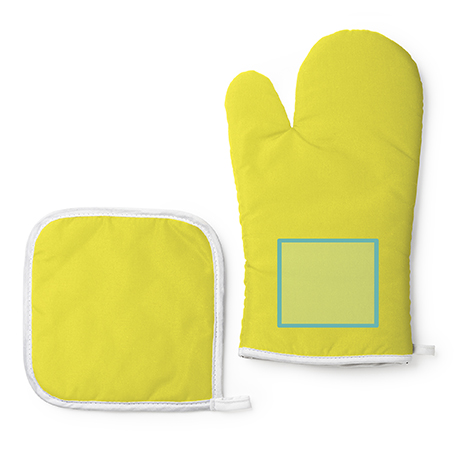 Set de cuina personalitzable amb manyopla i agafador de cotó/polièster. Àmplia zona per a logo. Ideal per a promocions i regals d´empresa.