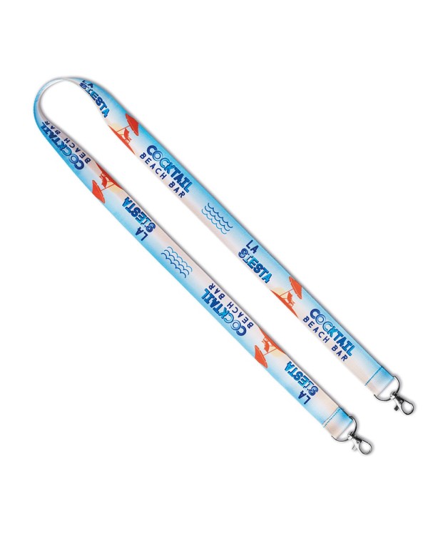 El Lanyard Sublimat 2 Clips és un accessori versàtil i atractiu, ideal per a esdeveniments, disponible en polièster i polièster RPET reciclat. Personalitza'l amb el teu disseny a tot color per a un regal corporatiu que combina funcionalitat i visibilitat de marca.