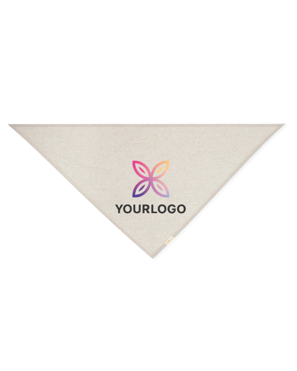 Mocador triangular fabricada en cotó reciclat, còmoda, resistent i sostenible, ideal per destacar el teu logo o disseny a festes, agrupacions i esdeveniments.