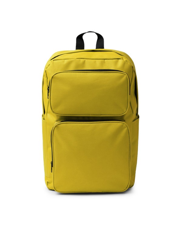 Motxilla personalitzable de 600D RPET , amb dues butxaques frontals, butxaques laterals i nanses encoixinades. Ideal per a publicitat, promocions i regals d´empresa.