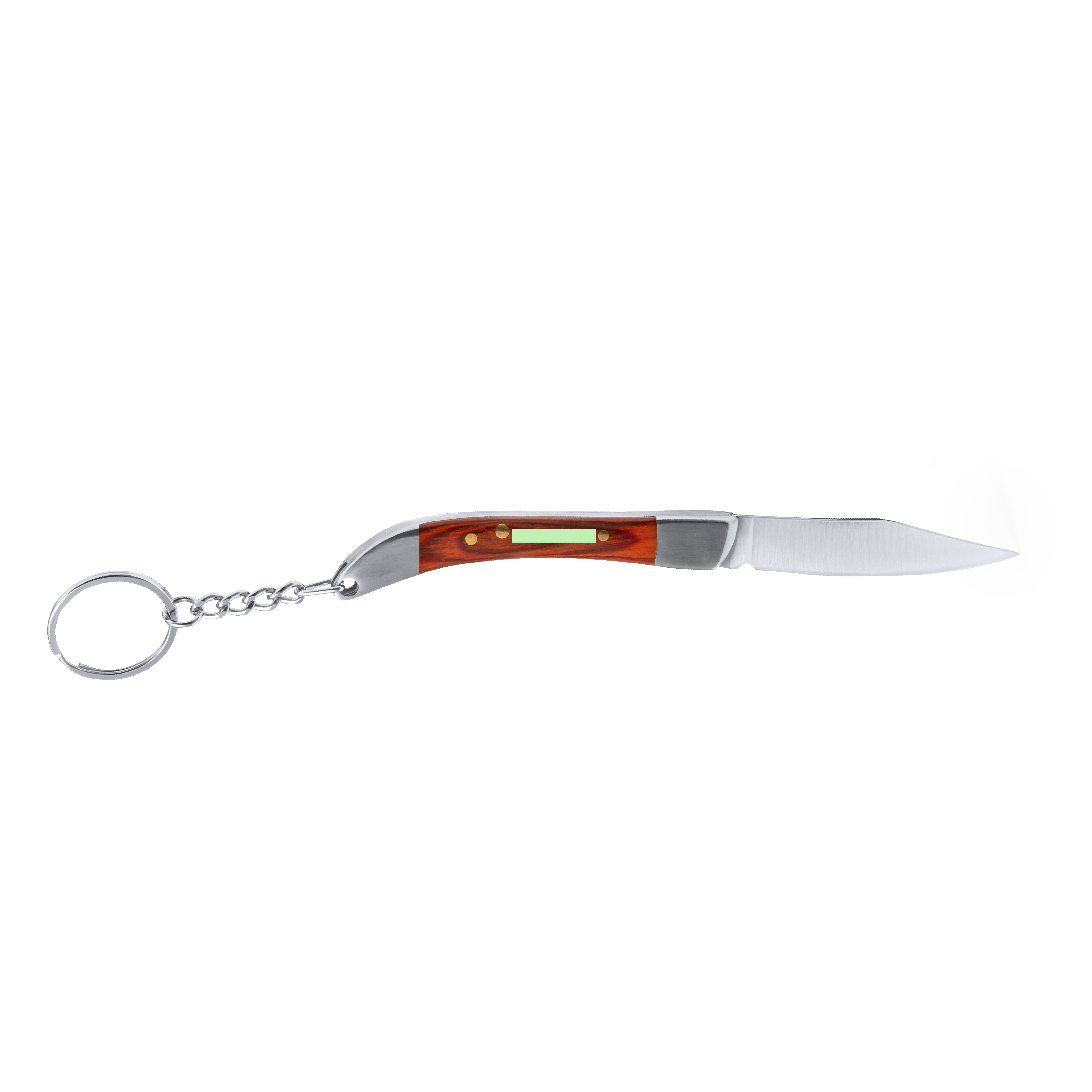 El Clauer Navaja Spiet combina practicitat, estil i materials d'alta qualitat. Amb un full d'acer inoxidable i una empunyadura metàl·lica amb detalls elegants en fusta natural, aquest clauer navalla és l'accessori ideal per als que valoren la funcionalitat i el disseny. La seva mida compacta i la seva presentació en caixa de disseny kraft el converteixen en un regal promocional exclusiu i personalitzable, perfecte per a empreses que busquen destacar la seva marca de manera sofisticada i útil.