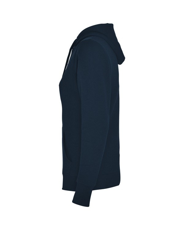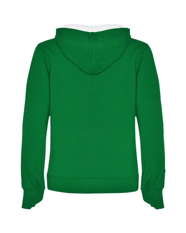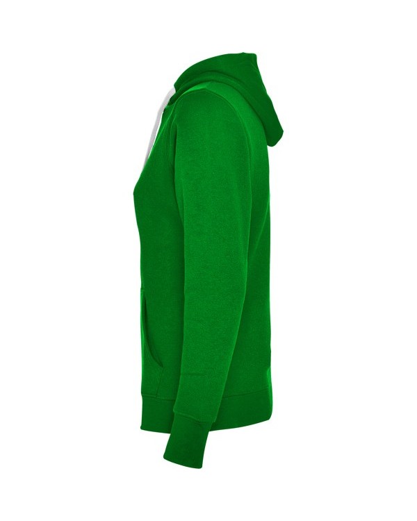 La Dessuadora Urban Woman de Roly és una peça entallada de tall femení, confeccionada en 50% cotó i 50% polièster amb un gramatge de 280 g/m² . El seu disseny inclou una caputxa bicolor de doble teixit amb cordó contrastat ajustable, cobreix costures al coll i butxaca tipus cangur. Els punys i la cintura estan elaborats en punt canalé amb elastà 1x1 i presenta un detall d'obertura per al polze als punys. Disponible en una àmplia gamma de colors i talles (S-2XL), és ideal per a ús diari, activitats esportives i promocions.