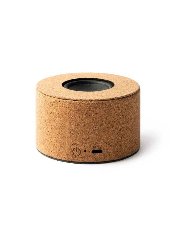 Altaveu sense fil de suro natural amb Bluetooth 5.0, potència de 3W, bateria recarregable de fins a 4 hores i funció mans lliures. Personalitzable amb logotip per a publicitat i regals d'empresa.
