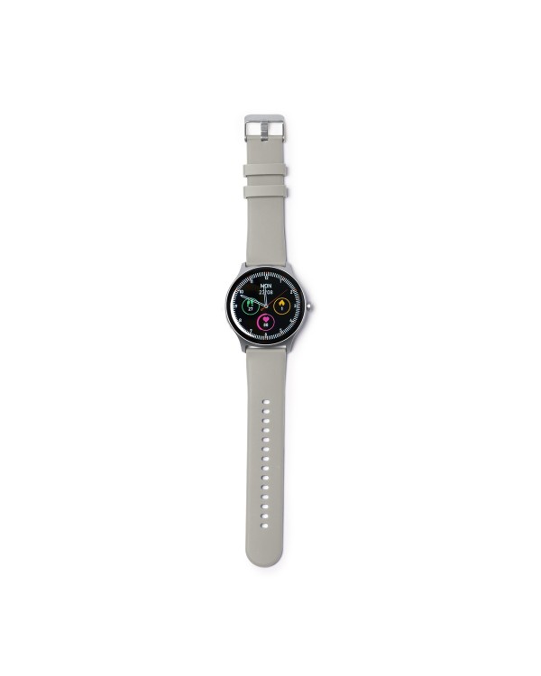 Rellotge intel·ligent personalitzable amb esfera metal·litzada, corretja de silicona, pantalla tàctil de 1,39”, funcions de trucada, monitorització de salut, resistència a l'aigua IP68 i compatibilitat amb iOS i Android. Ideal per a publicitat i regals d´empresa.