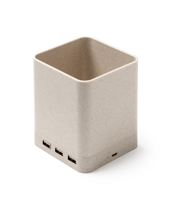 El llapis Multifunció Melbux fabricat en fibra de blat, un material sostenible que contribueix a la cura del medi ambient, aquest llapis no només organitza els teus estris d'escriptori, sinó que també incorpora una base de càrrega sense fil de 5W.