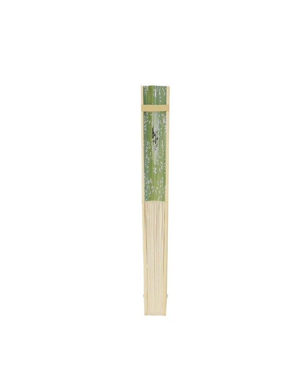 Abanico plegable 100% personalizable con varillas de bambú y tela de poliéster, ideal como regalo publicitario para eventos y campañas de verano.