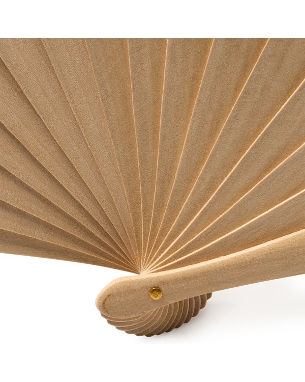 Abanico de madera y algodón personalizable ideal para bodas, eventos y regalo de empresa en verano.