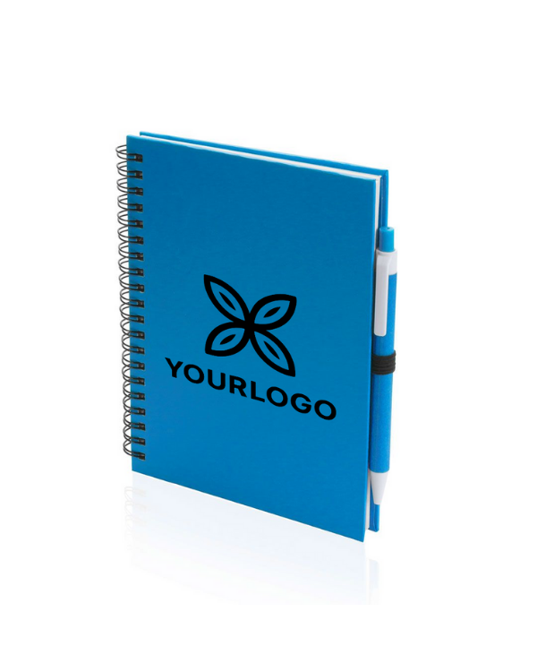 Personaliza la Libreta Koguel y destaca tu marca con un elegante set de libreta y bolígrafo diseñado para imprimir el logo de tu empresa. La libreta tiene anillas y tapas de suave tacto en cartón reciclado, junto con 70 hojas lisas y un soporte para el bolígrafo. Incluye un bolígrafo a juego, todo disponible en una amplia gama de colores para que puedas escojer el que mas combine con tu color corporativo. Perfecto para regalos de empresa y promociones, este conjunto combina sostenibilidad y atractivo visual.