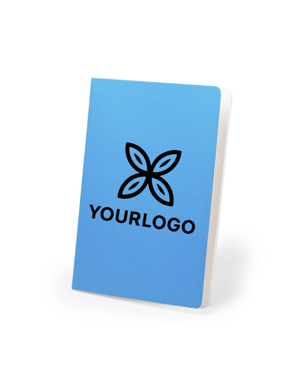 La libreta Dienel (14 x 20,5cm) presenta un diseño clásico con tapas de cartón en llamativos colores. Incluye costuras a juego en el lomo y 40 hojas lisas. Ideal para personalizar con el logo de tu empresa, es un excelente regalo promocional económico.