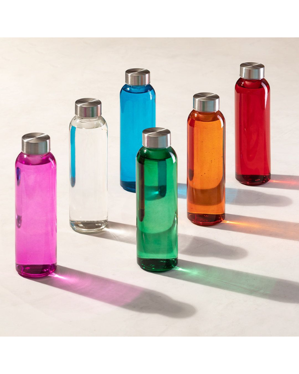 El Bidón Terkol de 500ml fabricado en cristal de alta calidad libre de BPA, cuenta con un diseño transparente moderno y un tapón a rosca en acero inoxidable que asegura un cierre seguro. Disponible en una amplia gama de colores y presentado en una caja individual de diseño, es perfecto para personalizar con tu logo, convirtiéndolo en un regalo promocional ideal para eventos corporativos y campañas publicitarias.