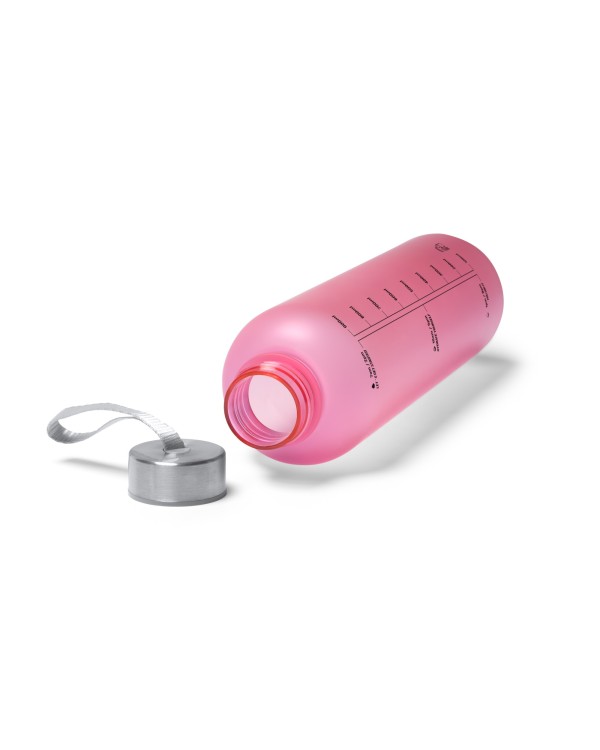 Su diseño incluye un tapón con cierre a rosca y asa de transporte, garantizando comodidad y seguridad en cada uso. Además, incorpora una recomendación de hidratación e indicador de capacidad, ayudándote a controlar tu consumo de agua a lo largo del día.