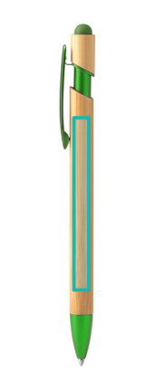 Bolígrafo cuerpo de bambú con puntero táctil y carga jumbo, ideal para publicidad y regalos de empresa personalizados.