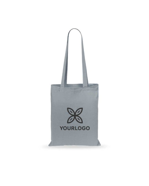Bolsa de tela personalizada Geiser de 105g/m² fabricada en algodón 100% natural. Ideal para promociones, ferias y eventos sostenibles. Disponible en varios colores y con asas largas para mayor comodidad. Personalízala con tu logo desde pocas unidades.