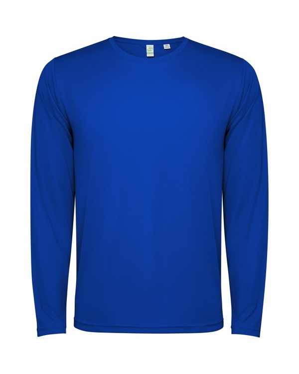 La camiseta técnica Estoril L/S de Roly confeccionada en 100% poliéster reciclado, es antibacteriana, transpirable, con tecnología Control Dry y tejido stretch. Disponible en varias tallas para adultos y niños, y en múltiples colores para personalizar con tu logo.