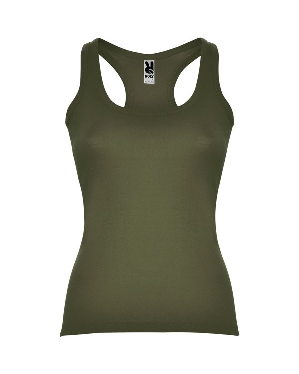 La Camiseta Carolina de Roly es una prenda femenina de tirantes, confeccionada en 100% algodón de punto liso con un gramaje de 220 g/m². Con un diseño entallado, sisas y escote ribeteado, esta camiseta cuenta con una espalda estilo nadadora y costuras laterales que ofrecen libertad de movimiento. Ideal para actividades deportivas y uso diario, está disponible en varios colores y tallas (S-2XL).