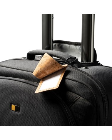Identificador de maleta de corcho, sostenible y ligero, con tarjeta identificadora incluida. Personalizable con logo mediante láser o tampografía. Ideal para publicidad y regalos de empresa.