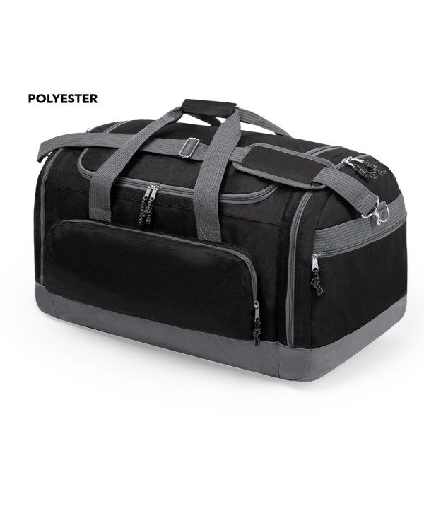 Bolso multiusos en poliéster 600D, con gran capacidad, compartimentos con cremallera, asas resistentes y bandolera ajustable. Personalizable con tu logo, ideal para clubes y gimnasios.