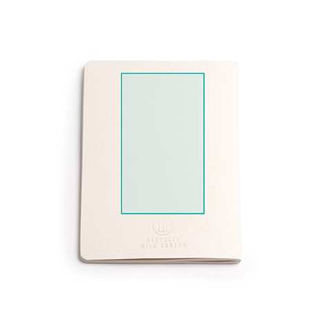 Bloc de notas A5 personalizable fabricado en cartón reciclado a base de Briks de Leche, ideal para publicidad y regalos de empresa sostenibles.