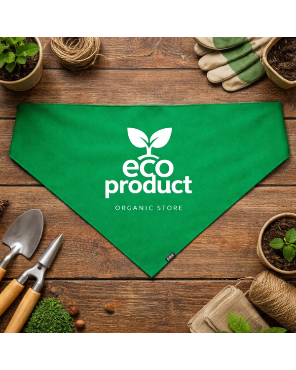 Pañoleta triangular fabricada en poliéster reciclado (RPET), ligera, resistente y sostenible, ideal para dar visibilidad a tu logo o diseño en fiestas, peñas y eventos.