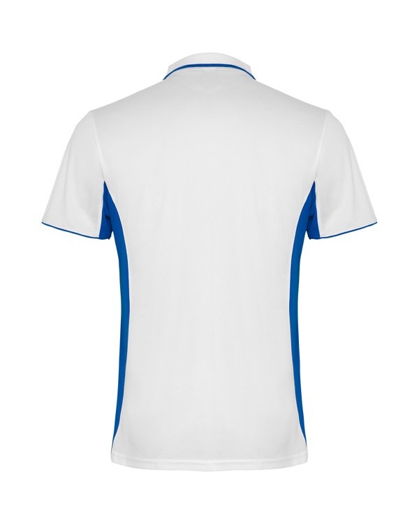 Polo técnico Montmeló de Roly, 100% poliéster piqué, transpirable y de secado rápido. Diseño bicolor con cuello de abotonadura y tapeta en contraste. Personalizable con tu logo para deporte y imagen corporativa.
