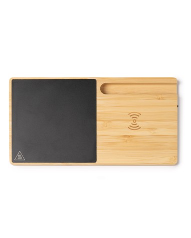Incluye una ranura soporte para sujetar el móvil mientras se carga o ves contenido, y un indicador luminoso que señala el estado de la carga. Su diseño compacto y su presentación en caja con estética ecológica lo convierten en un regalo corporativo moderno y útil.