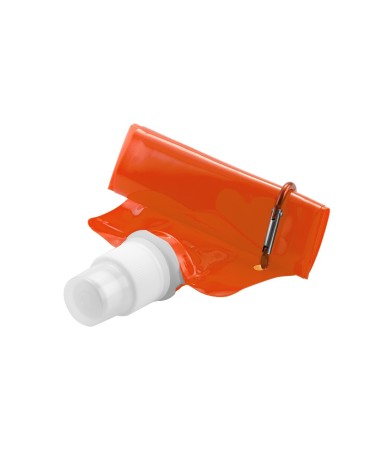 Bidón de 400ml de capacidad de material PET flexible y con mosquetón para colgar y poder llevar fácilmente. Personalizable con su logo o mensaje, ideal para publicidad o campañas de civismo o medioambientales.