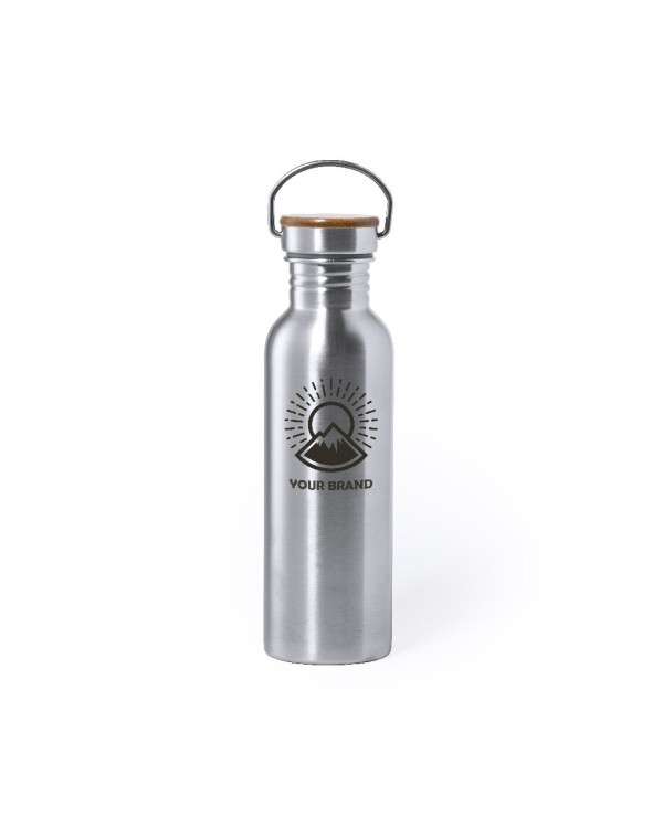 El Bidón Rangler de 800ml está fabricado en acero inoxidable con un tapón de bambú y un asa metálica de transporte. Con su diseño eco-friendly y su caja reciclable, es una opción perfecta para regalos promocionales. Su capacidad ideal y su estética natural lo convierten en un producto altamente personalizable, perfecto para ser grabado con tu logo o mensaje.