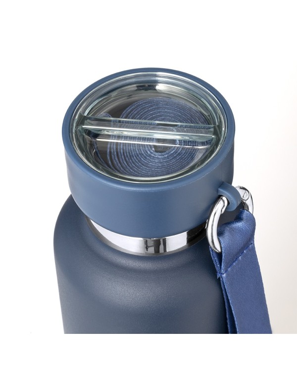 El Bidón Térmico Flautrok de 550 ml combina diseño y funcionalidad, ideal para regalos promocionales y de empresa. Fabricado en acero inoxidable, conserva la temperatura de tus bebidas, mientras que su tapón de rosca garantiza un sellado seguro. Incluye un vaso de 300 ml integrado en la base, con acoplamiento de rosca, y dos opciones de transporte: una pulsera elegante y un lanyard con mosquetón.