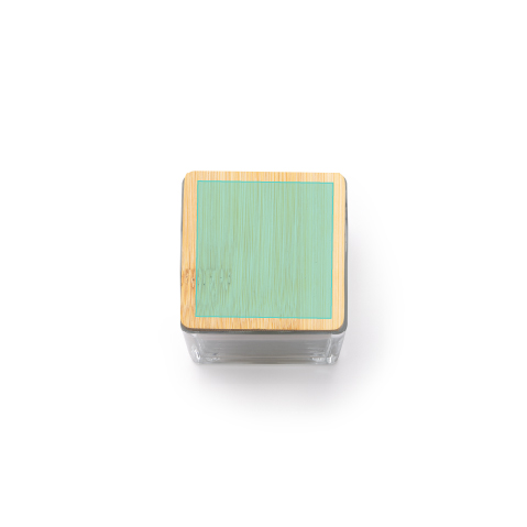 • Recipiente de cristal cuadrado con tapa de bambú.