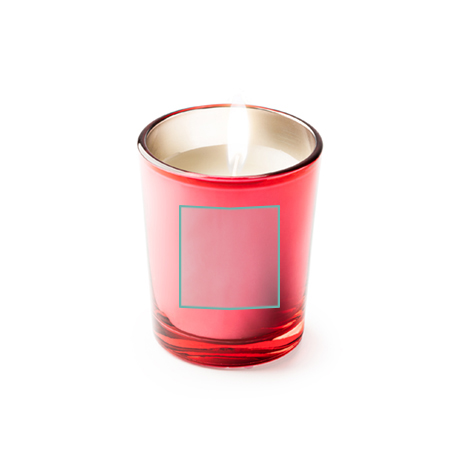 Vela aromática personalizable en vaso de cristal con cinco fragancias distintas. Presentada en caja individual. Ideal para publicidad y regalos de empresa.