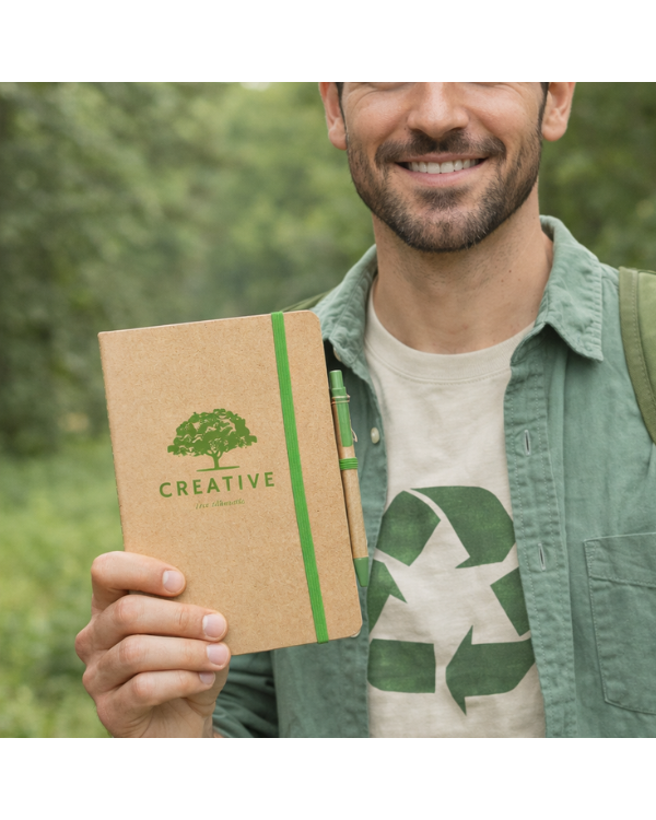 Carnet A5 avec stylo en carton recyclé et 60 feuilles unies - Esteka