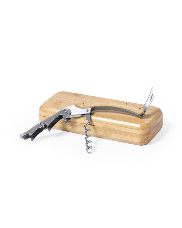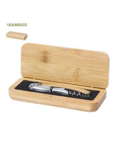 Le tire-bouchon Flomek en bambou et métal, présenté dans un élégant coffret, est idéal pour un cadeau d'entreprise lors d'événements et de réunions. Personnalisez-le avec votre logo pour un cadeau promotionnel que vos clients apprécieront.