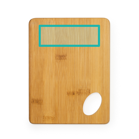 Planche à découper en bambou naturel au design ergonomique et découpé, personnalisable avec votre logo. Idéale pour les cadeaux d'entreprise et les promotions éco-responsables.