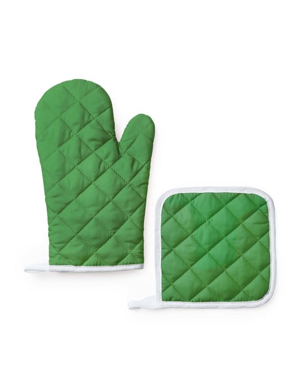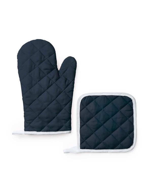 Ensemble de cuisine personnalisable comprenant un gant de cuisine et une manique en coton/polyester. Grand espace pour votre logo. Idéal pour les objets promotionnels et les cadeaux d'entreprise.