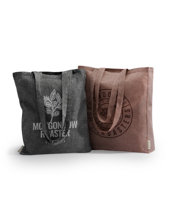 Sac en coton recyclé 140 g/m², avec anses de 70 cm de long et grand espace de marquage. (38x41x8,5cm) Idéal pour personnaliser avec votre logo en sérigraphie ou en transfert. Idéal pour les promotions et les cadeaux d'entreprise.