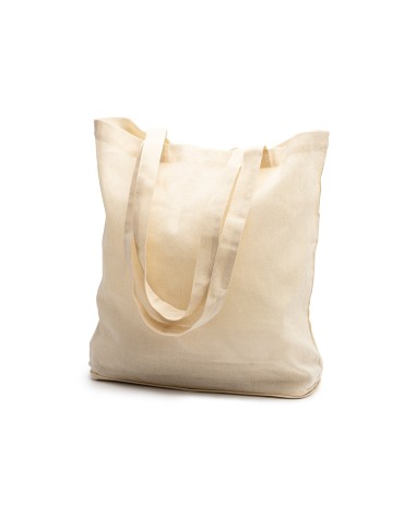 Sac pliable en coton avec base en jute, poche extérieure et poignées renforcées. Fermeture à glissière. Personnalisable avec votre logo, idéal pour la publicité et les cadeaux d'entreprise.