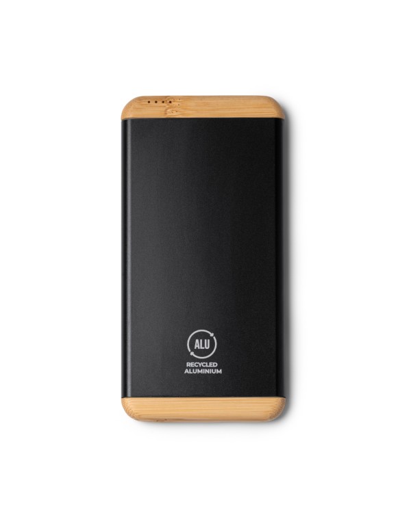La banque d'alimentation GULER 5 000 mAh combine durabilité et fonctionnalité dans un design élégant. Son corps est fabriqué en aluminium recyclé, complété par des détails en bambou naturel, offrant une touche distinctive et écologique. Il dispose d'un port d'entrée de type C et d'un port de sortie USB, tous deux avec une capacité de charge DC5V 2A, garantissant une charge efficace de vos appareils. Il dispose d'un voyant d'état de charge et est présenté dans un coffret écologique, parfait pour renforcer l'engagement environnemental de votre entreprise. Comprend un câble de chargement de type C.