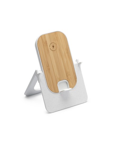 Le chargeur sans fil Alok combine une conception écologique et des fonctionnalités avancées, idéal pour mettre en valeur votre marque lors d'événements promotionnels et de cadeaux d'entreprise. Son corps est en fibre de blé et possède une élégante surface de chargement en bambou, lui donnant une touche naturelle et durable. Sa conception pliable et son support multi-positions vous permettent de placer votre smartphone en position verticale ou horizontale, offrant ainsi plus de commodité lors du chargement.