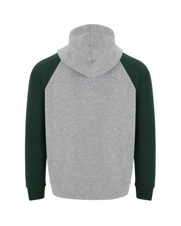 Le Sweatshirt Roly Badet est un vêtement unisexe composé de 50% coton et 50% polyester d'un grammage de 280 g/m² . Son design comprend une capuche à col croisé, des manches raglan contrastées, une poche kangourou pratique et des poignets et un ourlet côtelés avec élasthanne 1x1.