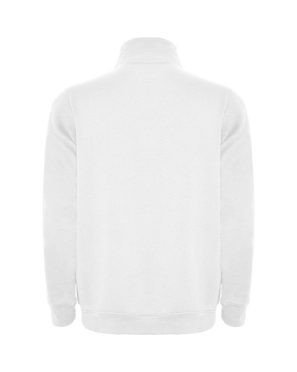 Le sweat Aneto de Roly est un vêtement unisexe composé de 50% coton et 50% polyester avec un grammage de 280 g/m². Sa conception comprend une demi-fermeture éclair assortie avec un col haut, des poignets et une taille côtelés 1x1 et un col intérieur assorti.