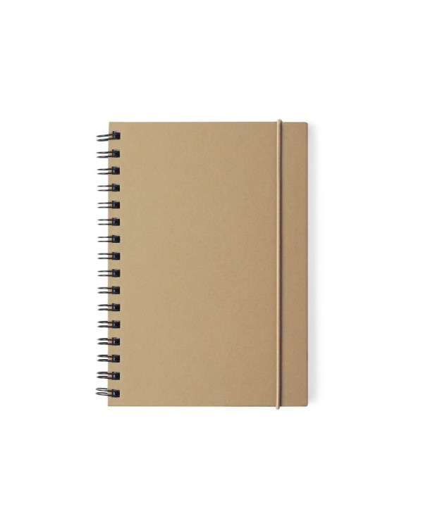 The Zubar Notebook with rigid covers in recycled cardboard and an elastic closure in natural colors , this notebook is perfect for those who value both design and sustainability. With 80 single-lined sheets , it is ideal for taking notes or writing down ideas in an organized way. Spiral with 3 different colors. Customizable with your logo or message , the Zubar Notebook is perfect for corporate gifts , advertising and merchandising.