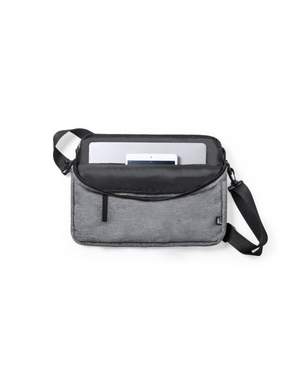 The Pirok Document Holder is the perfect combination of elegance, functionality and sustainability. Made from 600D RPET melange effect, a durable material made from recycled plastic, this document holder contributes to the reduction of plastic waste, helping to care for the environment. With padded compartments for laptops up to 15 inches and tablets up to 10 inches, as well as an exterior zip pocket, it is ideal for keeping all your devices organized. It has a rear accessory for attaching to the trolley, reinforced handles and an adjustable shoulder strap with padding for greater comfort. Customizable with your logo or message, the Pirok Document Holder is perfect for corporate gifts, advertising and merchandising.