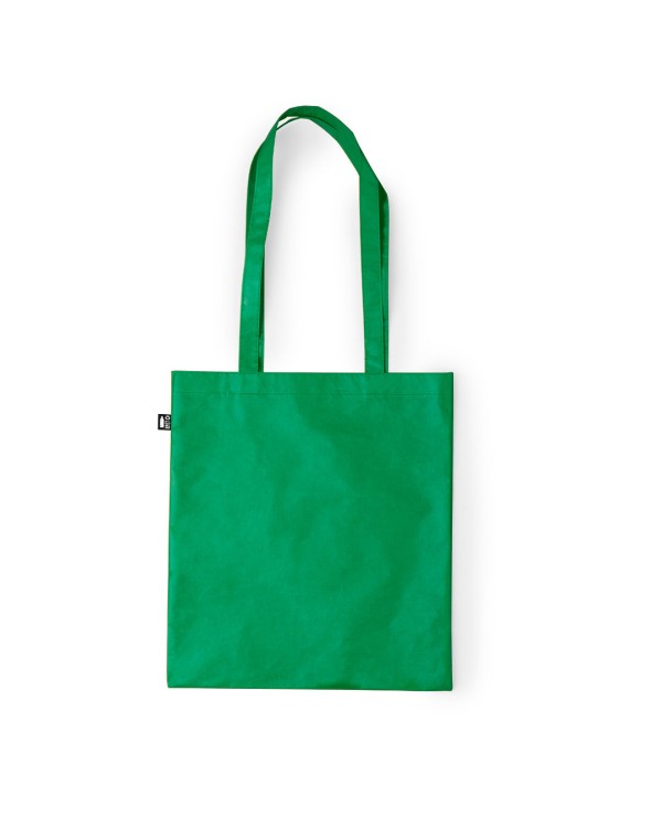 With a matte finish , long handles , and reinforced stitching , this bag supports up to 5 kg , making it ideal for events , trade shows , promotional campaigns , and everyday use . Available in a wide range of colors , it features a distinctive RPET label that reinforces your company's environmental commitment.